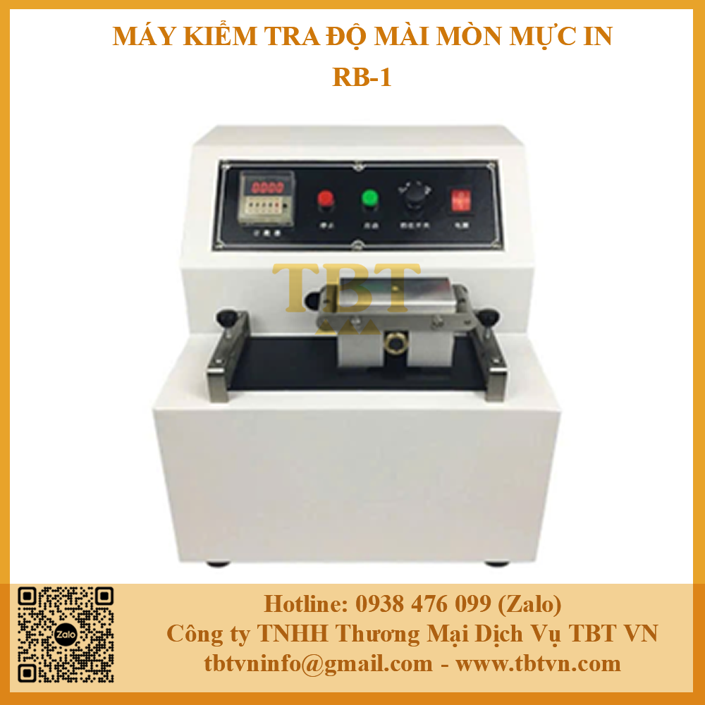 - Máy kiểm tra độ mài mòn mực in RB-1 được sử dụng để kiểm tra độ chà xát làm mài mòn giấy sau khi được in bằng cách ma sát lên sản phẩm, từ đó đánh giá được khả năng chống mài mòn của mẫu, độ mòn của mực in. Số lần ma sát sẽ được ghi nhận cùng với tải trọng và điều kiện thử nghiệm.