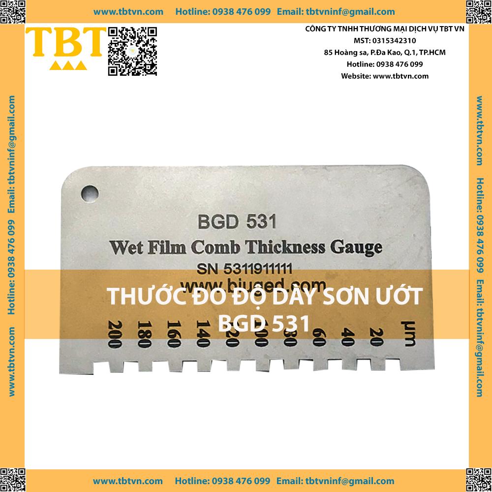 - Thước BGD 531/1 là thước đo độ dày có hình dạng như chiếc lược với thang đo độ dày từ 10um tới 100um.