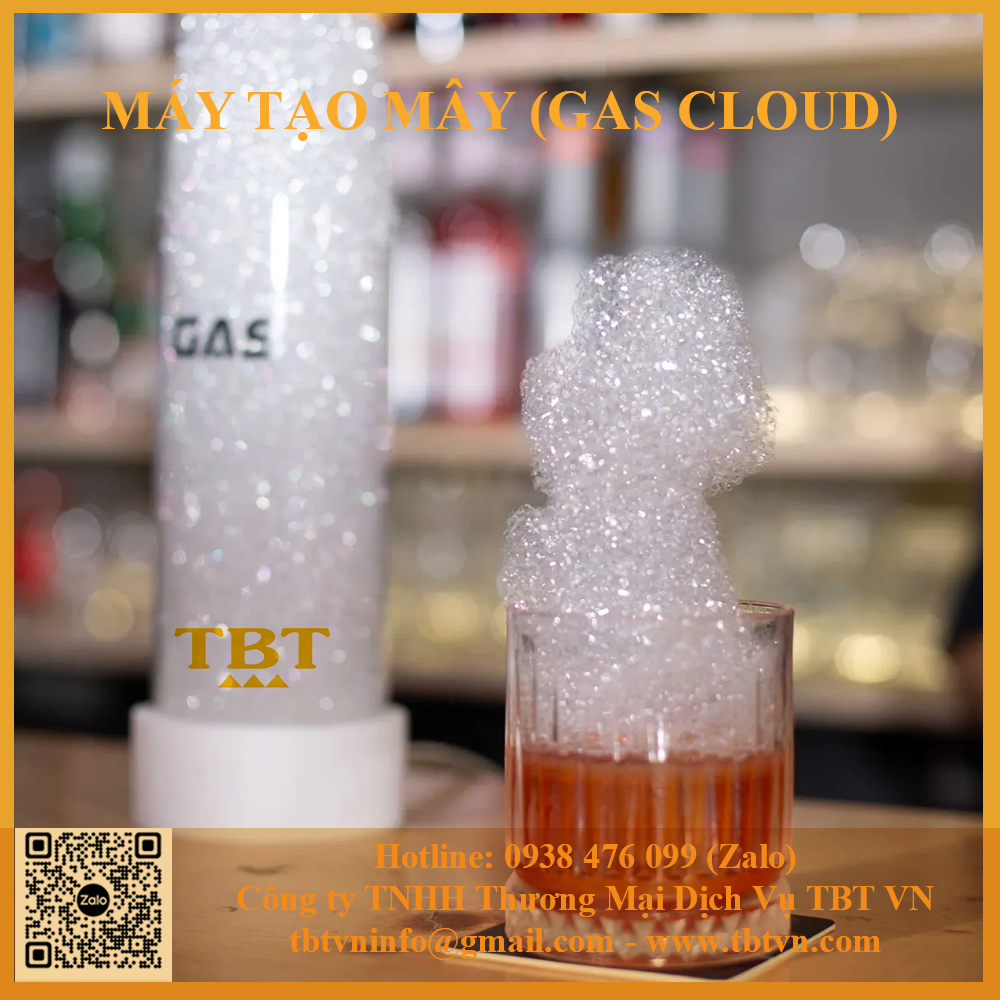 - Máy tạo mây Gas Cloud sử dụng nguyên lý bơm không khí với công thức phân tử và khí Helo, tạo bong bóng trên thị trường có thể được kết hợp với những máy khác, giúp trang trí món ăn đẹp, hấp dẫn và sáng tạo hơn.