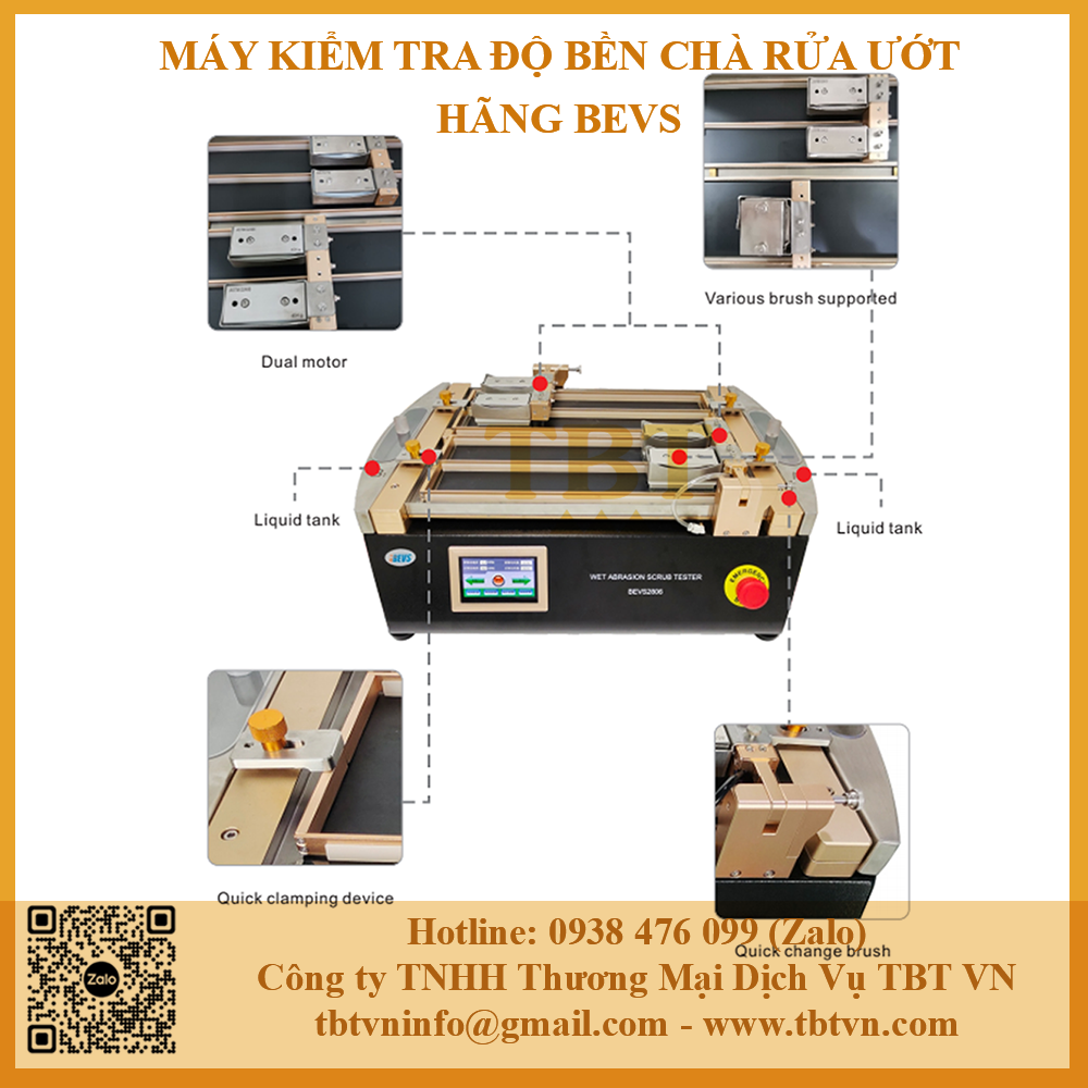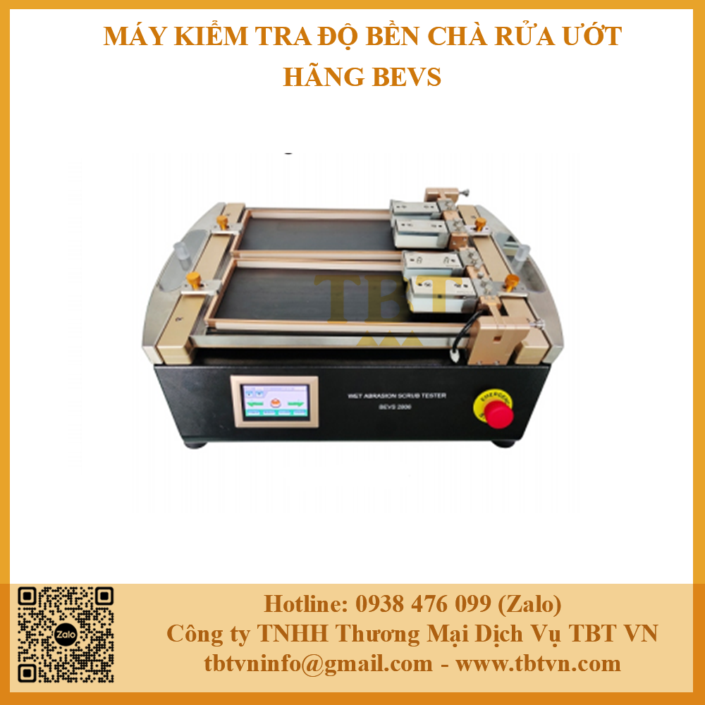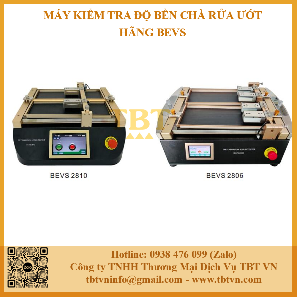 - Máy kiểm tra độ bền chà rửa ướt hãng BEVS model BEVS2806 được sử dụng để kiểm tra hiệu suất mài mòn, chà rửa và khả năng rửa của nhiều loại vật liệu khác nhau đặc biệt trong lĩnh vực sơn phủ gốc nước.