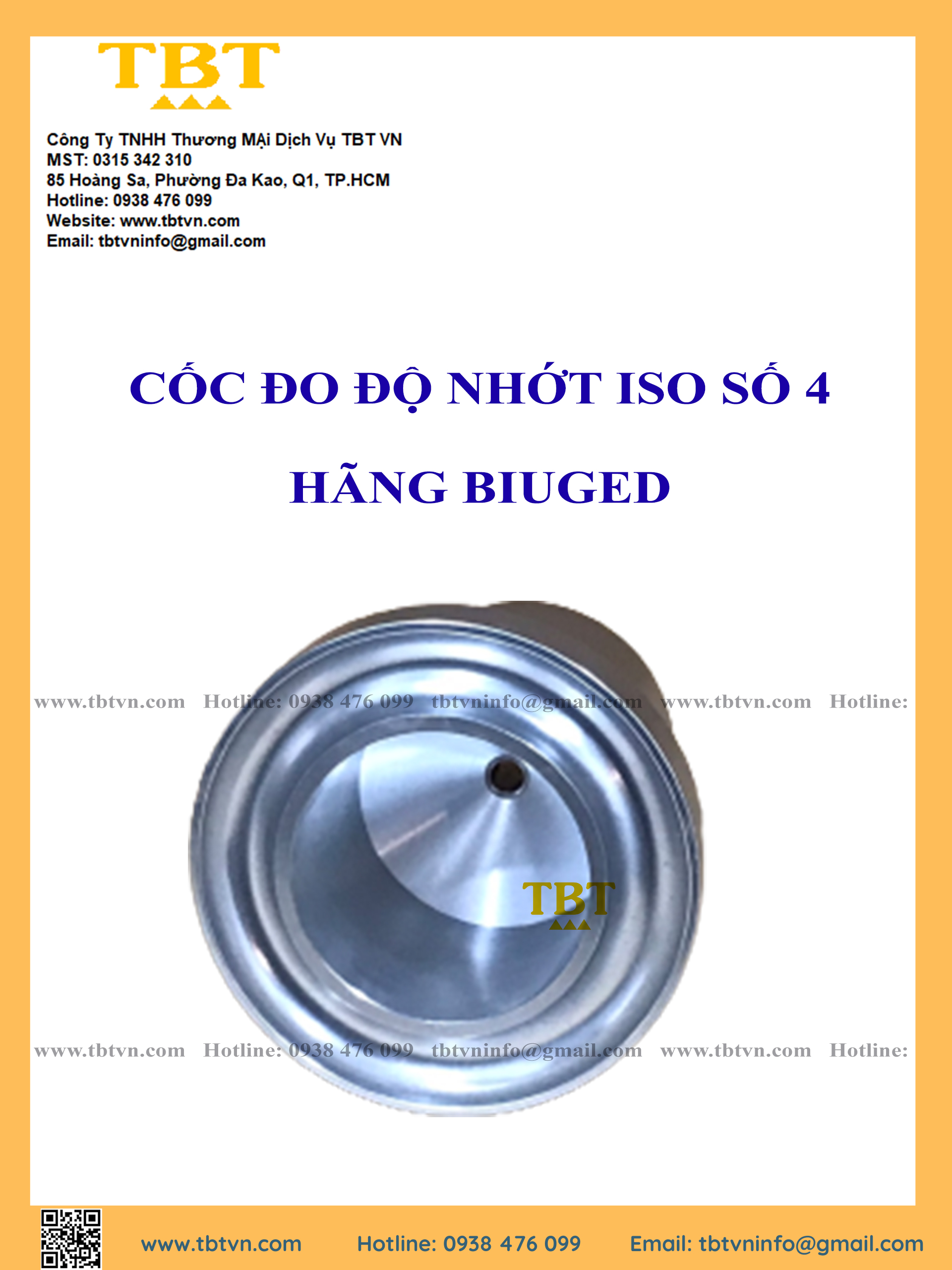 THÔNG SỐ KỸ THUẬT CỦA CỐC ĐO ĐỘ NHỚT ISO CUP 4 HÃNG BIUGED BGD 128