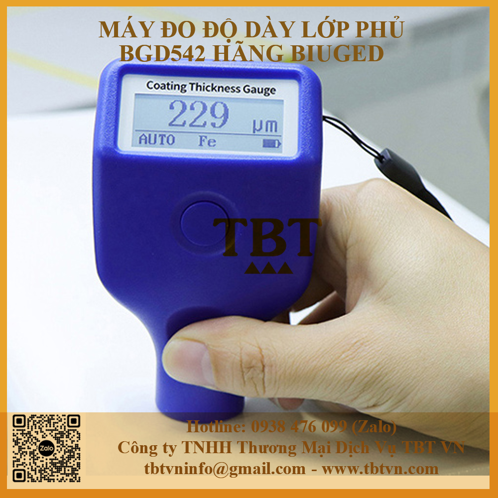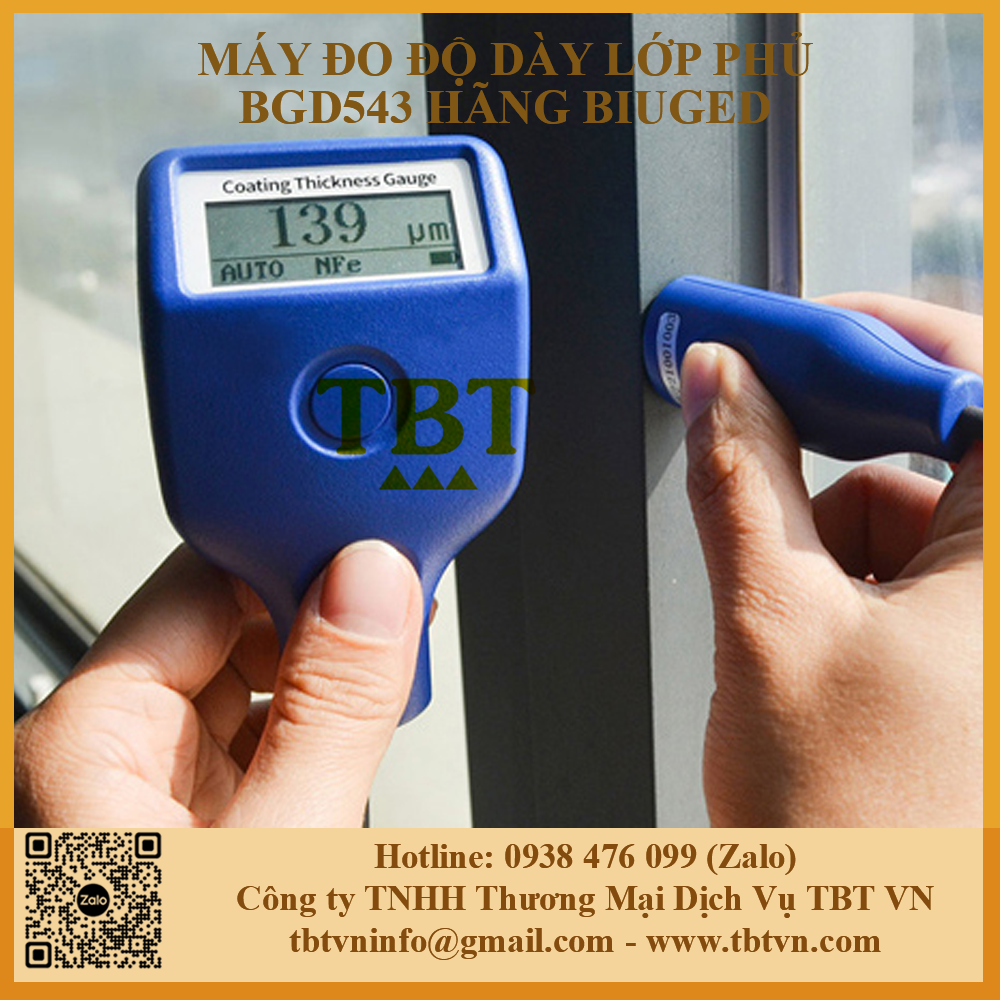 - Máy kiểm tra độ dày sơn khô hãng Biuged sử dụng nguyên tắc dòng điện xoáy để đo độ dày của lớp phủ phi sắt từ trên nền kim loại sắt từ (sắt, Coban, Niken và Gadolinium) và độ dày của lớp phủ không dẫn điện trên nền kim loại không từ tính (Đồng, Nhôm, Magie, Kẽm, Crom…)