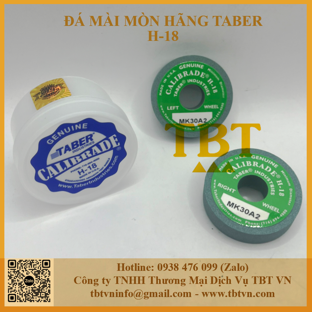 - Đá mài mòn H-18 hãng Taber được sử dụng cho máy mài mòn , giúp kiểm tra độ mài mòn của sản phẩm nhắm đánh giá chất lượng và bảo quản sản phẩm một cách tốt nhất.