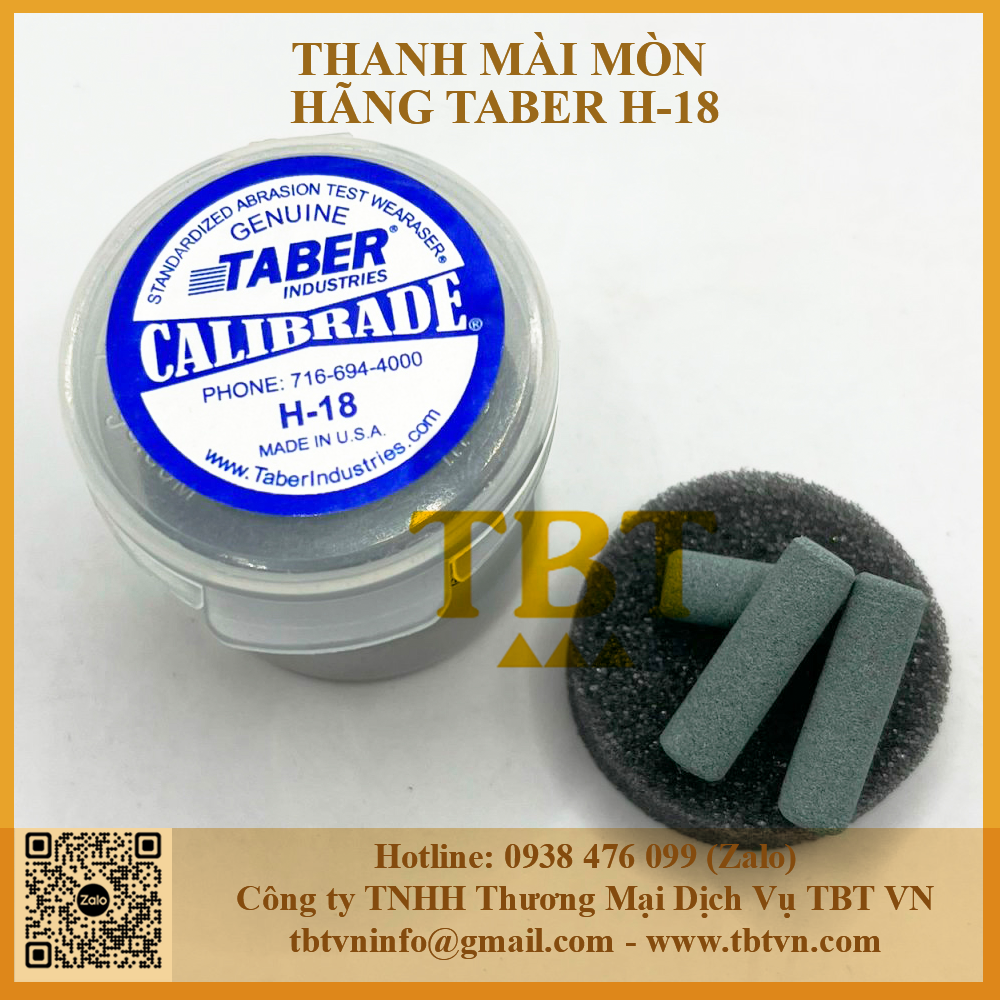 - Thanh mài mòn H-18 hãng Taber được sử dụng cho máy mài mòn Linear và máy kiểm tra độ mài mòn chuyển động tịnh tiến, giúp kiểm tra độ mài mòn của sản phẩm nhắm đánh giá chất lượng và bảo quản sản phẩm một cách tốt nhất.