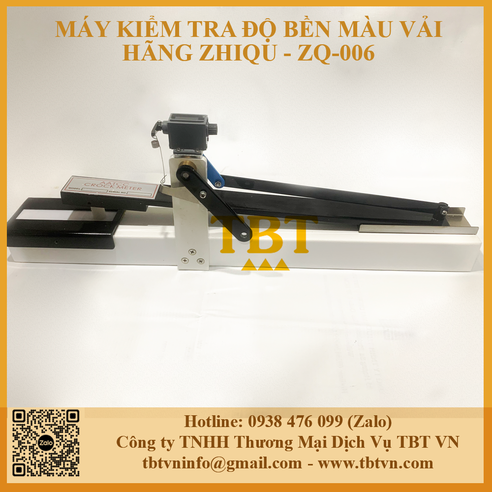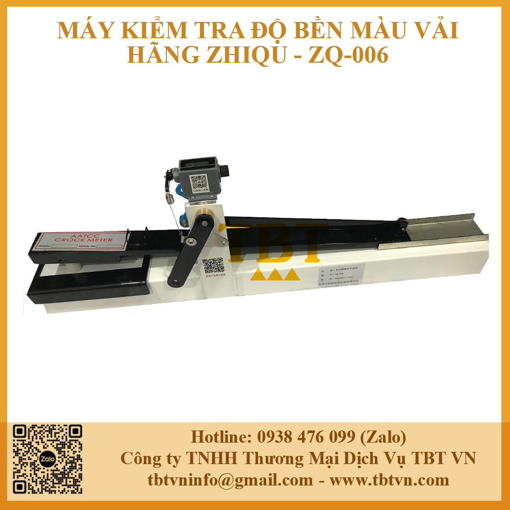 Máy kiểm tra độ bền màu vải hãng ZhiQu Model ZQ-006 là máy kiểm tra độ chà xát vải thủ công, với thao tác sử dụng đơn giản, dễ vận hành, giá thành rẻ, máy là thiết bị không thể thiếu trong các nhà máy, phân xưởng ngành may, in ấn, dệt nhuộm và các ngành công nghiệp khác.